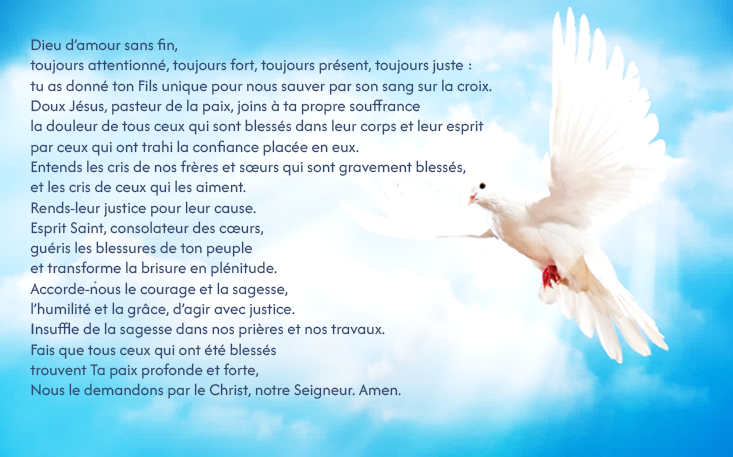 - d’un prêtre catholique spécialement sensibilisé à l’accompagnement des personnes victimes, qui assiste aux enseignements, célèbre les sacrements et se tient disponible pour celles et ceux qui désirent s’entretenir avec lui.